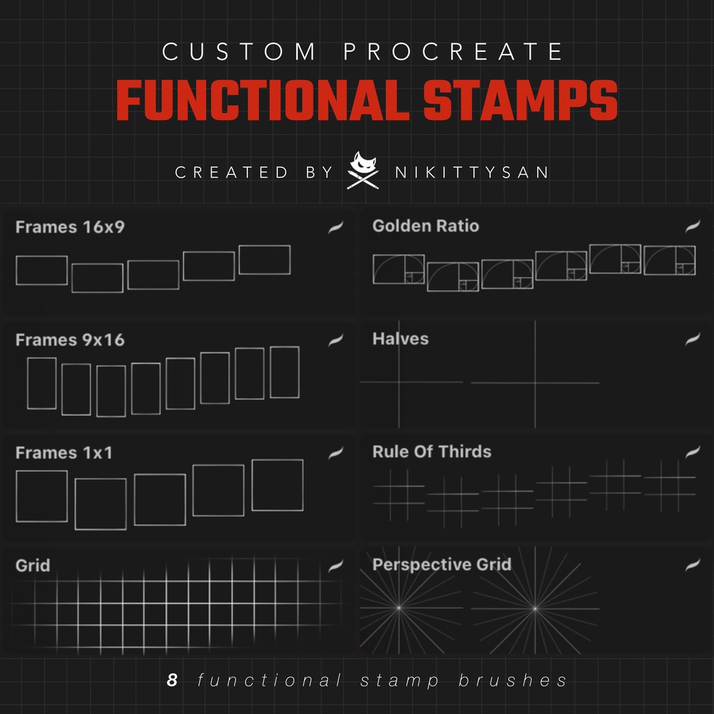 8 stamp reference brushes for procreate